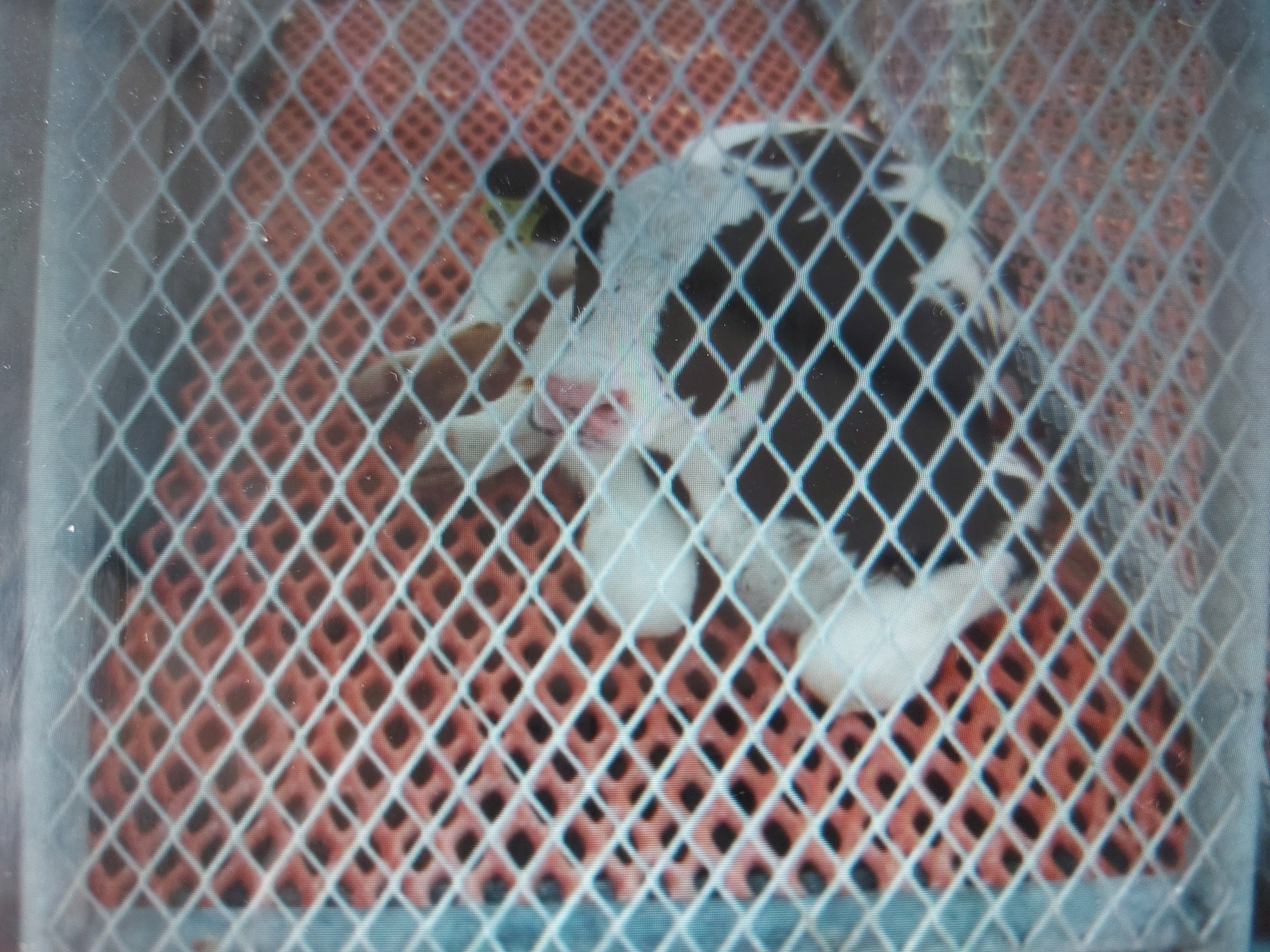Kalveren hebben een ellendig leven. De melkveehouders insemineren koeien voornamelijk om de melkproduktie van de koe op gang te houden. De kalveren, direkt weggehaald bij de moeder na de geboorte, krijgen geen moedermelk, ze staan de eerste zes weken van hun leven alleen in een hok of kooi, zie foto hieronder. Ze krijgen twee keer per dag een emmertje kunstmelk, en vast voer, géén gras hun natuurlijke voeding. In die eerste weken moeten kalfjes elkaar kunnen zien en aanraken (wettelijk verplicht), vaak is dit hen onmogelijk.